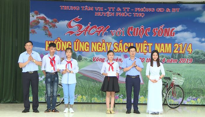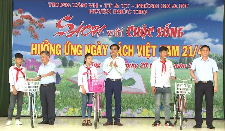 Cũng tại Ngày Hội Sách, Uỷ ban Mặt trận tổ quốc huyện Phúc Thọ đã tặng 03 suất quà cho 03 em học sinh có hoàn cảnh khó khăn vươn lên học tốt, mỗi suất quà là một chiếc xe đạp.