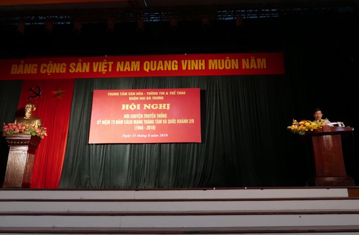 Sáng ngày 31/8/2018, Trung tâm Văn hóa – Thông tin và Thể thao quận Hai Bà Trưng tổ chức Hội nghị nói chuyện truyền thống nhân kỷ niệm 73 năm Cách mạng Tháng Tám và Quốc khánh 2/9.